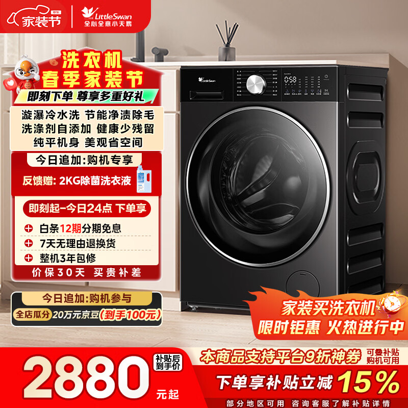 小天鹅(LittleSwan)小乌梅3.0轻享版 滚筒洗衣机全自动 10KG水魔方 超薄 TG10VE10以旧换新 国家补贴 京东自营 内衣洗