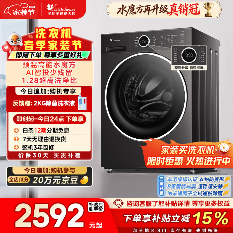 小天鹅(LittleSwan)滚筒洗衣机全自动家用 10KG水魔方 TG10V628PLUS 以旧换新 京东自营 内衣洗 一级能效
