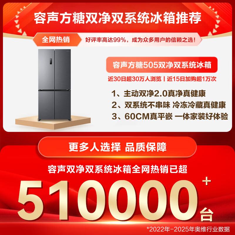 容声方糖505L十字门冰箱双系统双循环超薄零嵌入式一级能效风冷无霜大容量灰BCD-505P60CZMAD国家补贴