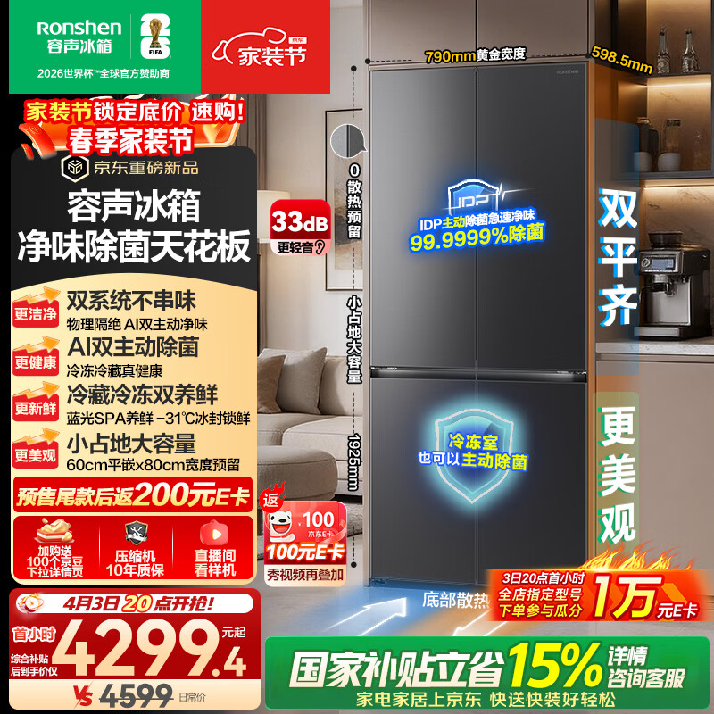 容声方糖505L(2.0)十字门冰箱双系统双循环超薄零嵌入式大容量一级能效无霜BCD-505Q50CZLBD国家补贴