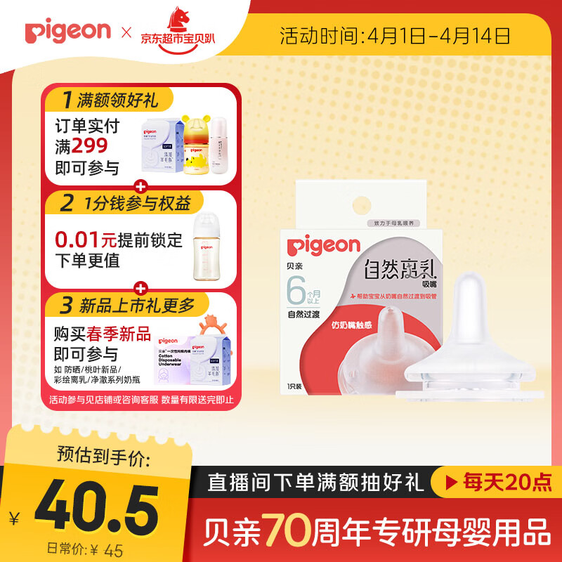 贝亲(Pigeon)自然离乳系列吸嘴 替换奶嘴 6月+ BA151