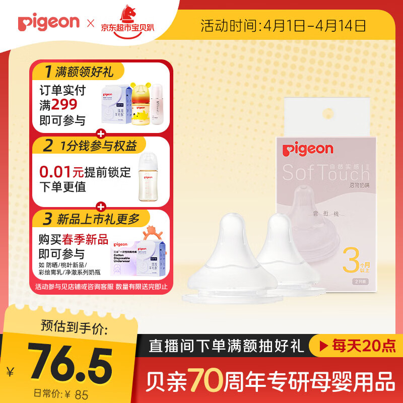 贝亲(Pigeon)自然实感第3代启衔奶嘴 宽口径奶嘴 M号-2只装 3个月以上 BA135