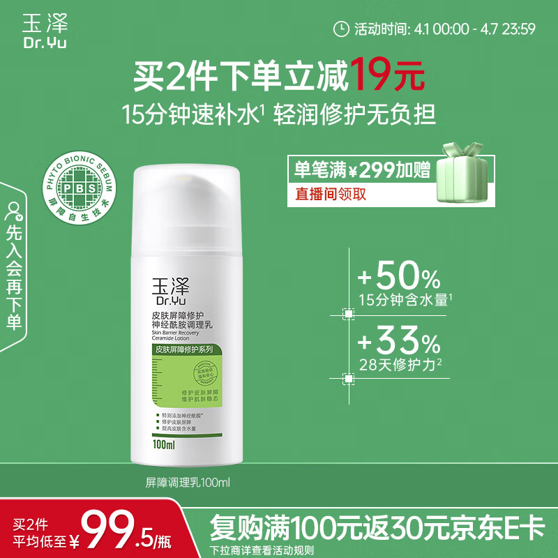 玉泽(Dr.Yu)皮肤屏障修护神经酰胺调理乳100ml(舒缓补水 保湿滋润)