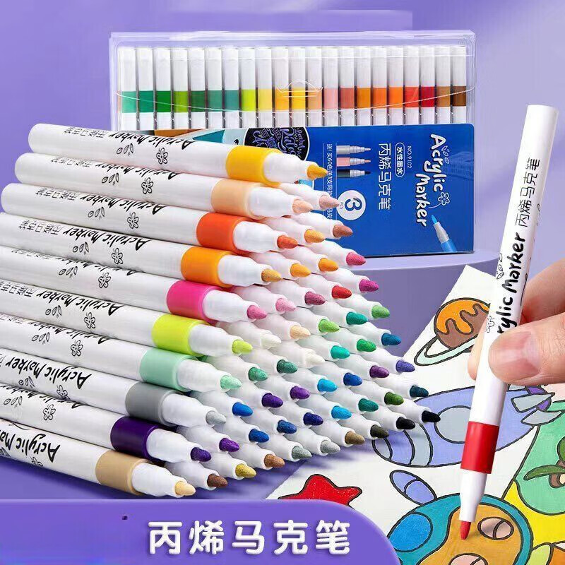 正版丙烯马克笔24色36色防水不透墨可叠色礼盒款女孩礼物 24色丙烯马克笔 PVC盒装