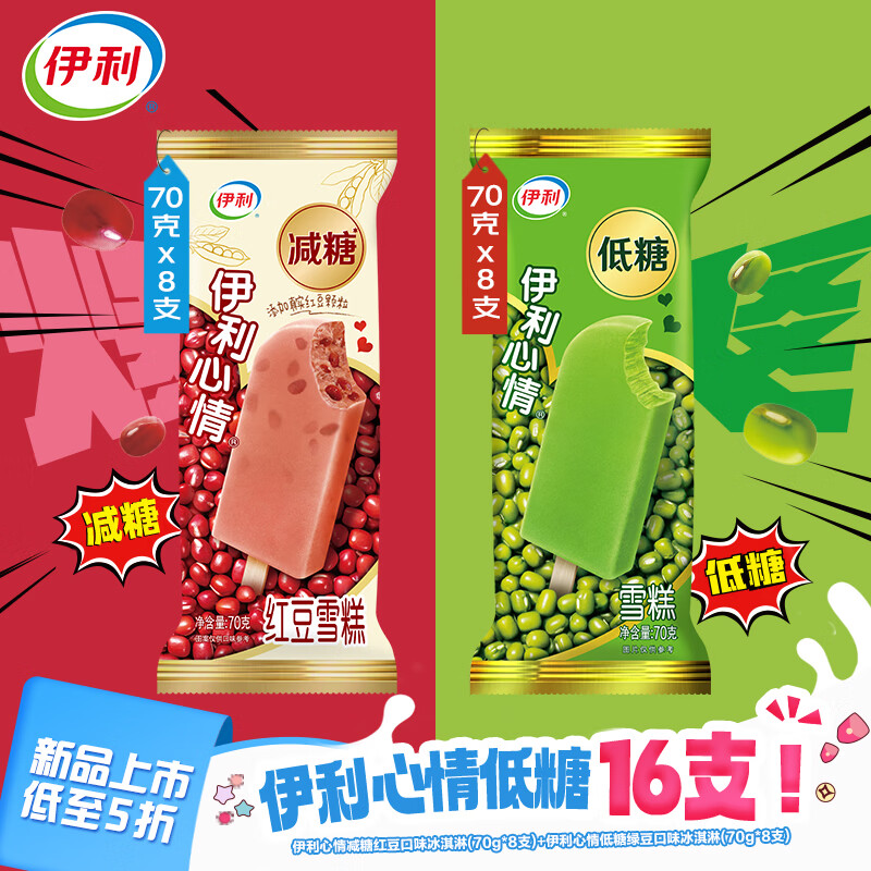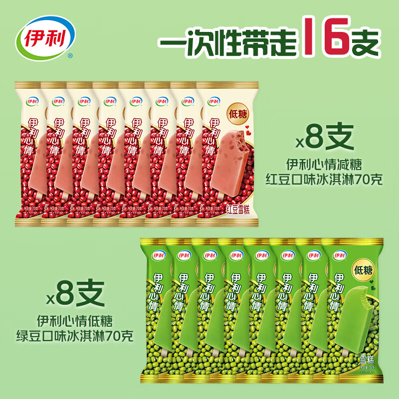 伊利心情低糖绿豆红豆双口味冰淇淋组合16支装