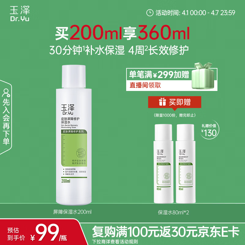 玉泽(Dr.Yu)皮肤屏障修护保湿水200ml(敏感肌爽肤水温和舒缓)