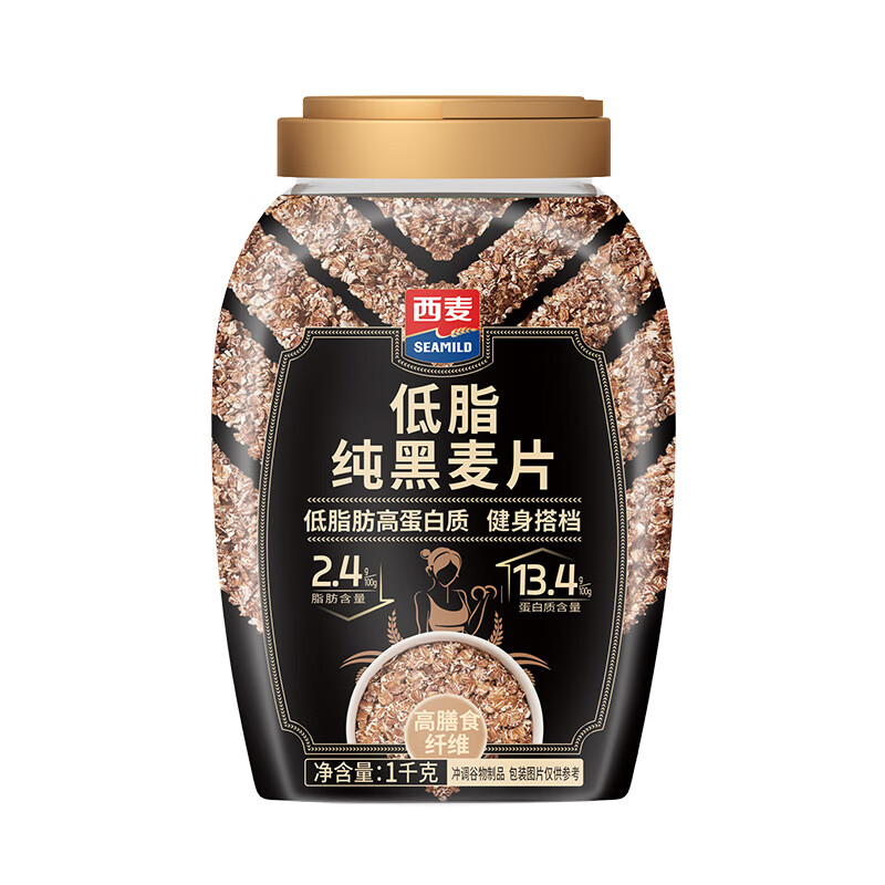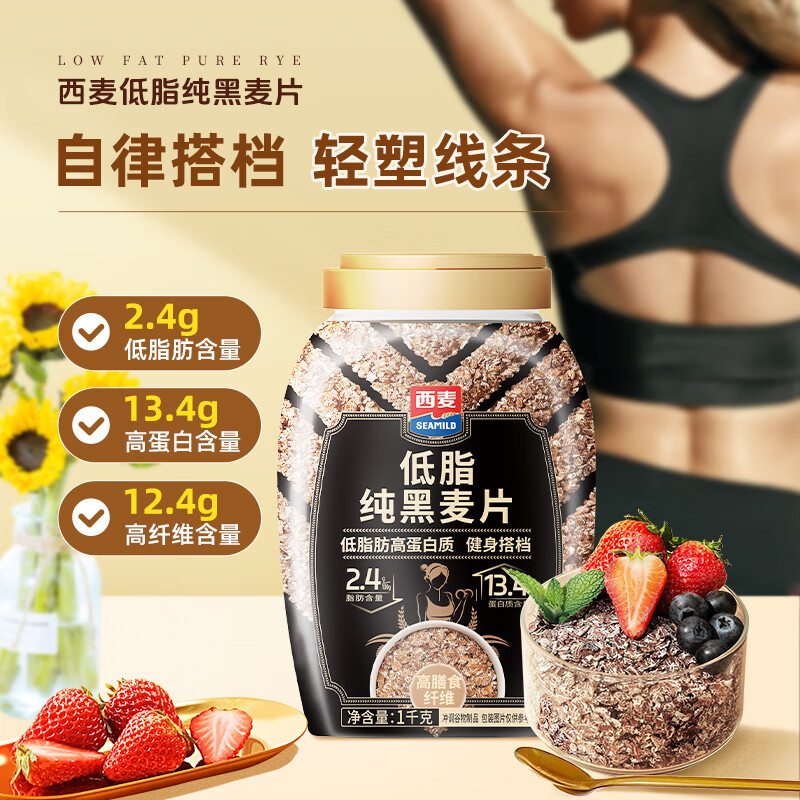 西麦低脂纯黑麦片1000g桶装 无糖代餐减肥减脂早餐食品无添加蔗糖