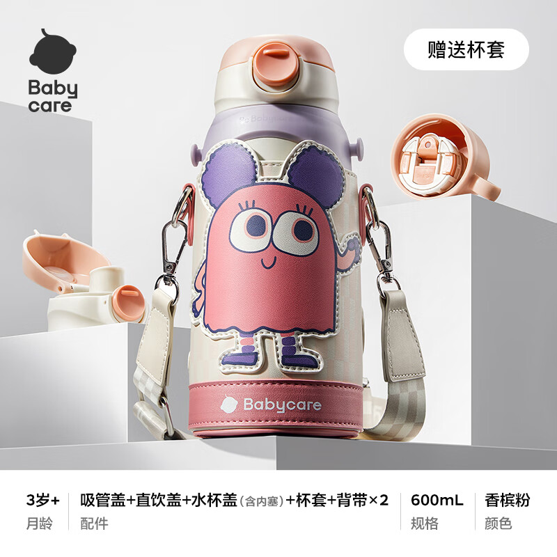 babycare儿童保温杯水壶吸管杯大宝宝学饮杯316不锈钢三合一上学600ml