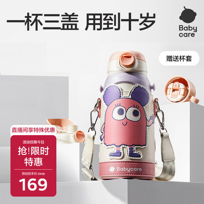今日推荐:babycare儿童保温杯水壶吸管杯大宝宝学饮杯316不锈钢三合一上学600ml
