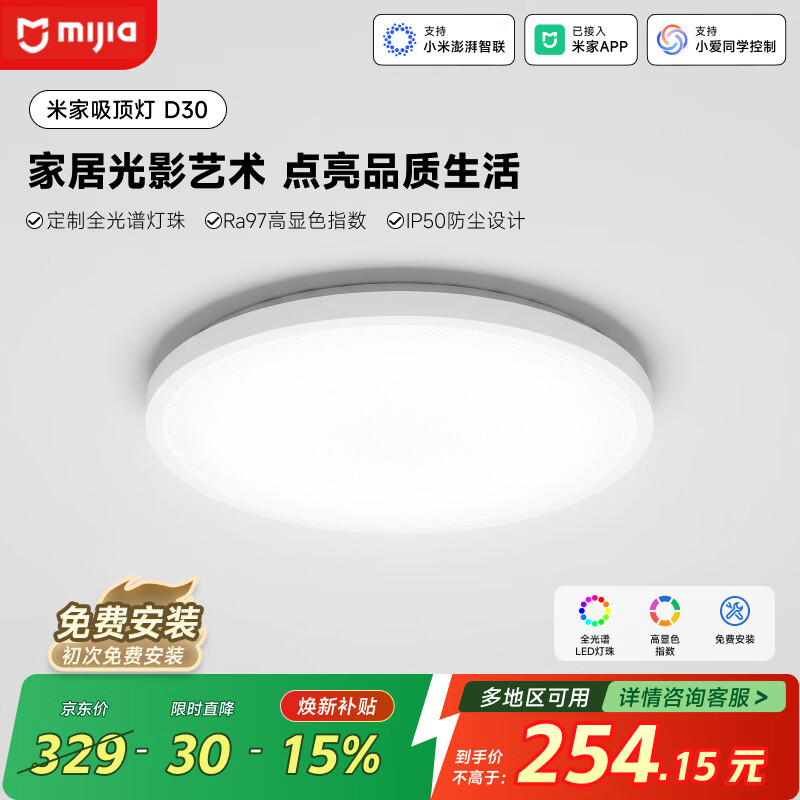 米家小米米家智能吸顶灯D30全光谱卧室灯灯具简约现代【【包安装】