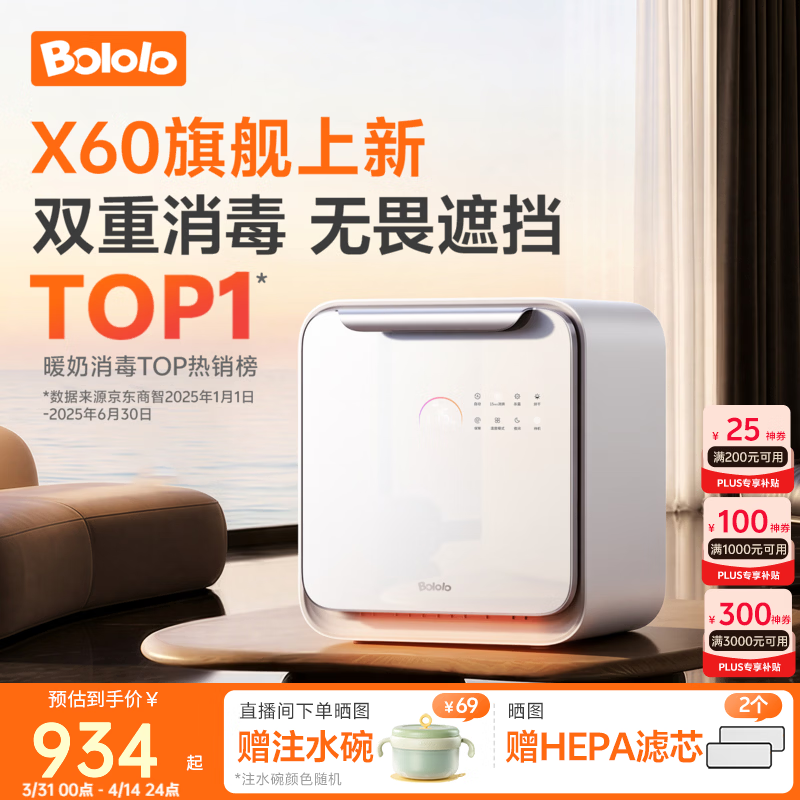 波咯咯(bololo)紫外线 奶瓶消毒柜 婴儿奶瓶消毒烘干二合一 【上新·双重消杀】 25L 全能X60-33颗金钻灯珠15min+APP