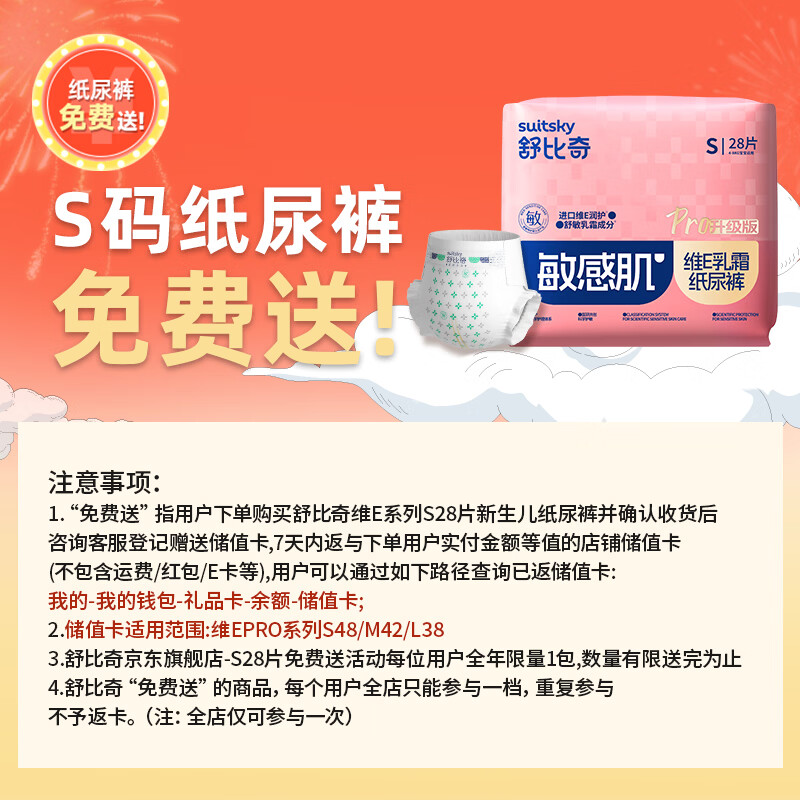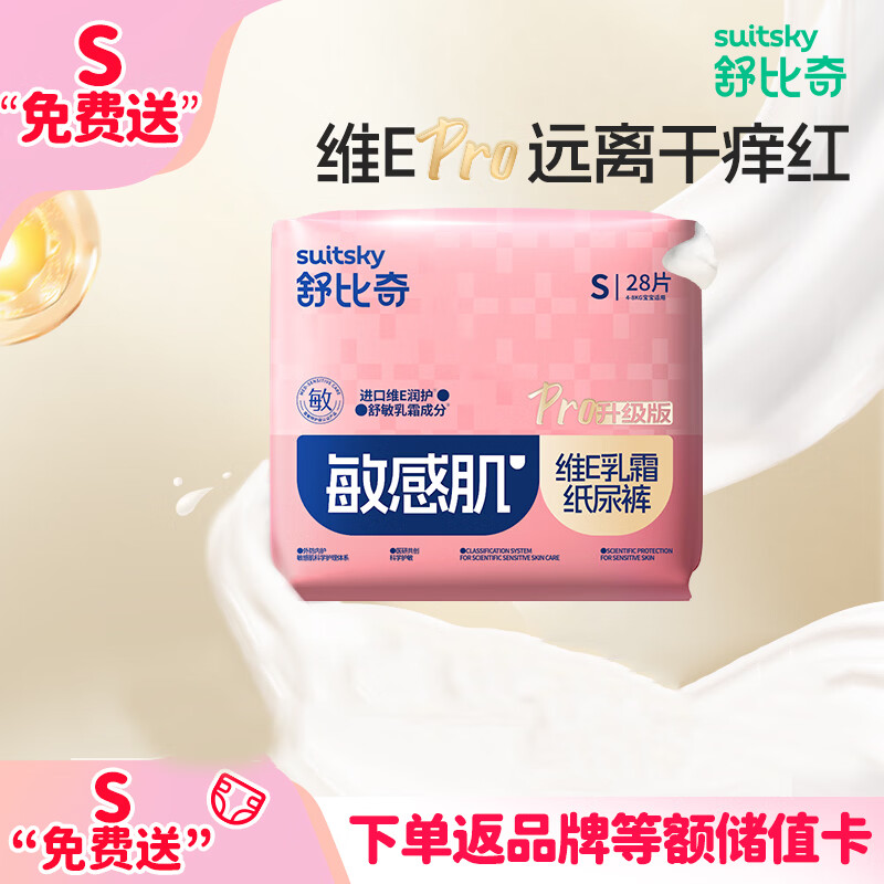 舒比奇(Suitsky)维E敏感肌纸尿裤S28片(4-8kg)新生儿宝宝婴儿小包尿不湿柔软透气