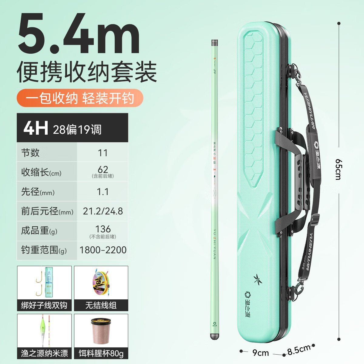 渔之源小蜻蜓溪流鱼竿钓鱼竿手竿短节鱼竿鲫鱼竿小物钓鱼竿迷你鱼竿台钓 【便携出行套装】5.4米短节竿+9cm硬壳包+钩线漂饵