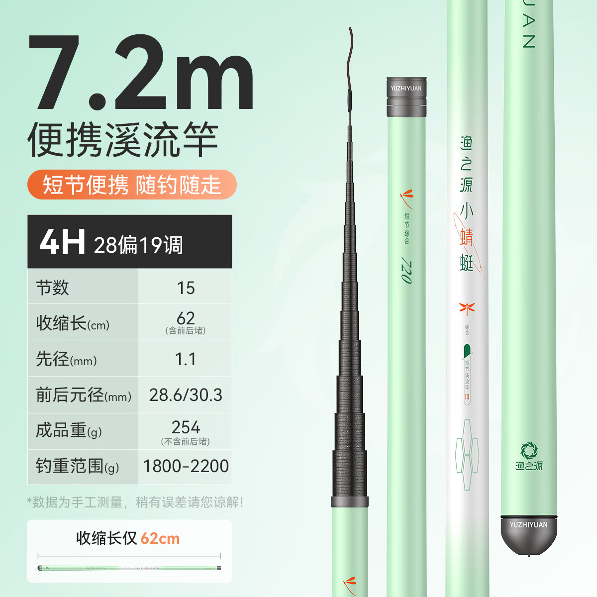 渔之源小蜻蜓溪流鱼竿钓鱼竿手竿短节鱼竿鲫鱼竿小物钓鱼竿迷你鱼竿台钓 碳布升级丨7.2m【适用20斤内】收缩长62cm 仅重254g