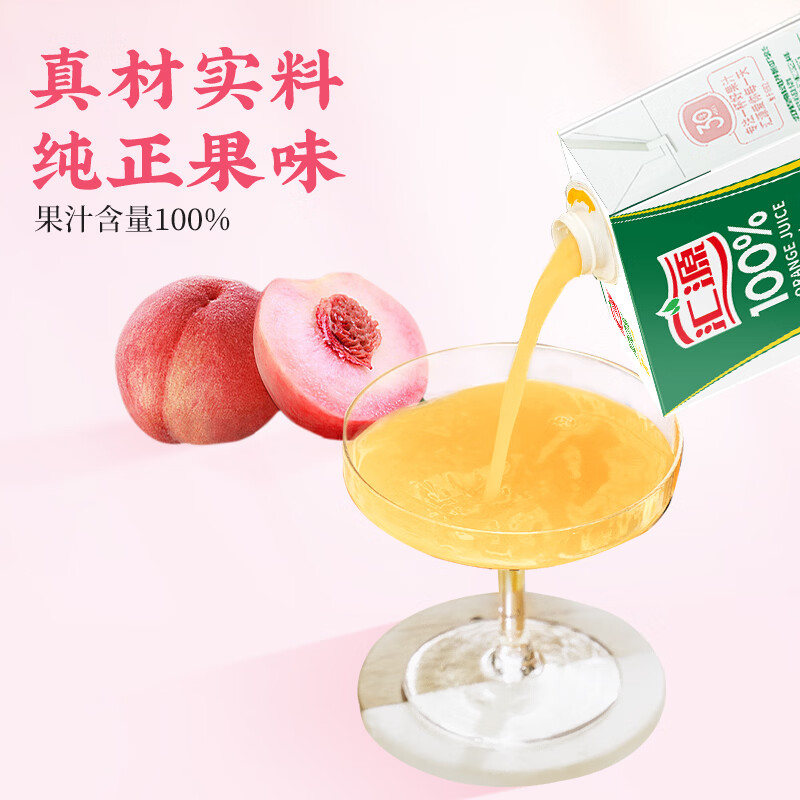 汇源100%桃汁果汁饮料1Lx5盒礼盒送礼宴请餐桌果蔬汁饮料聚餐畅享