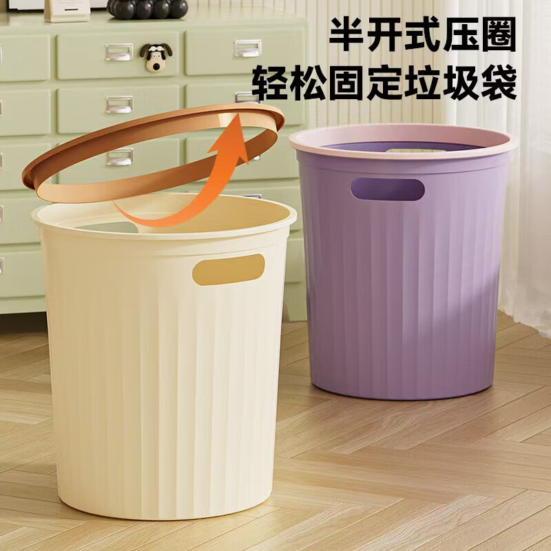 今日推荐:ins风垃圾桶家用大号无盖客厅厨房卧室卫生间厕所办公室压圈纸篓 奶油色【中号】