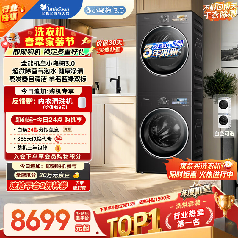 小天鹅(LittleSwan)年度机皇小乌梅3.0洗烘套装10KG滚筒洗衣机全自动+热泵烘干机TG10VE40+E40以旧换新(支持鸿蒙智联)