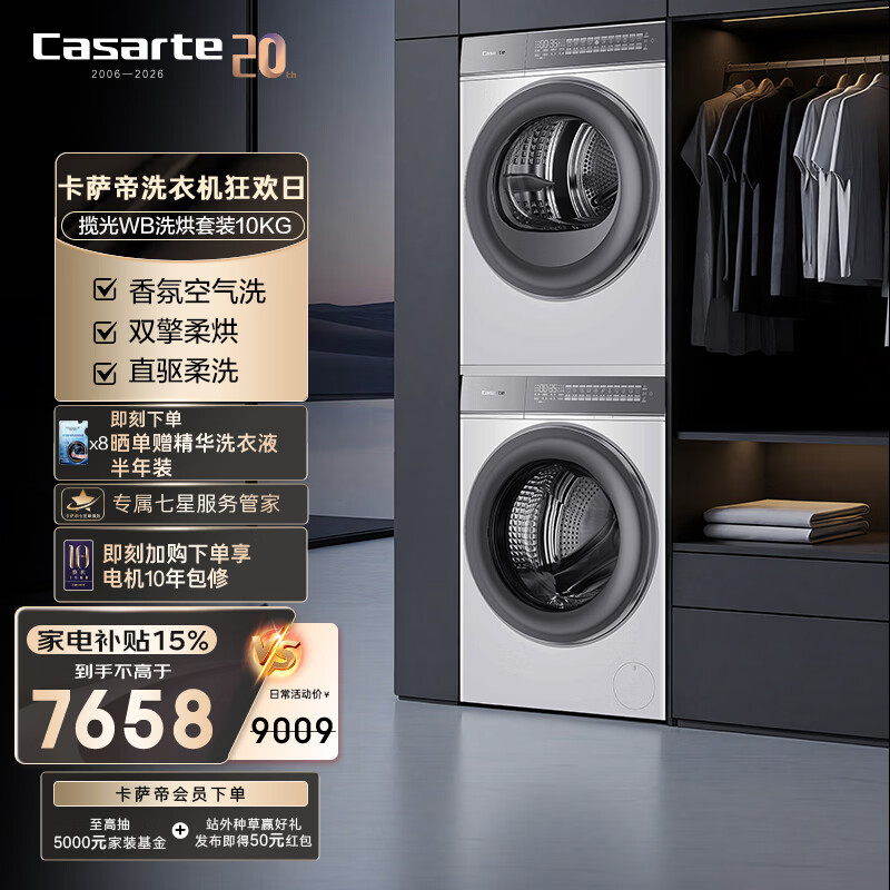 卡萨帝(Casarte)揽光WB洗烘套装 10KG滚筒洗衣机全自动+10KG双擎热泵烘干机? 家电补贴15% 10LWB+10FWB