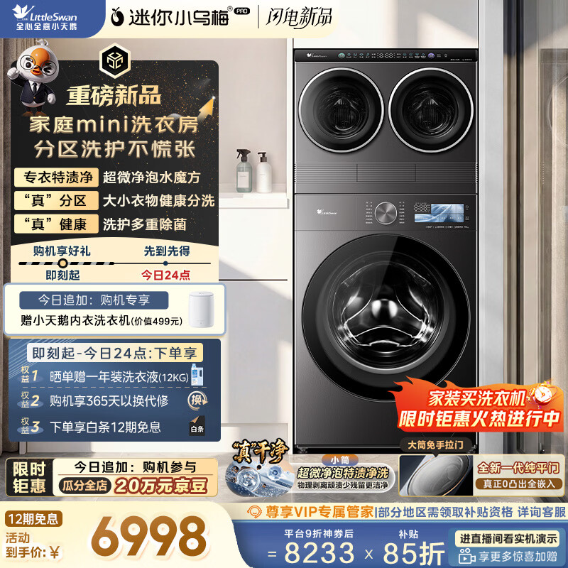 小天鹅(LittleSwan)迷你小乌梅PRO AWE同款 懒人三筒洗衣机 滚筒洗衣机全自动套装 2+10KG TG10EK60 可叠放 内衣洗
