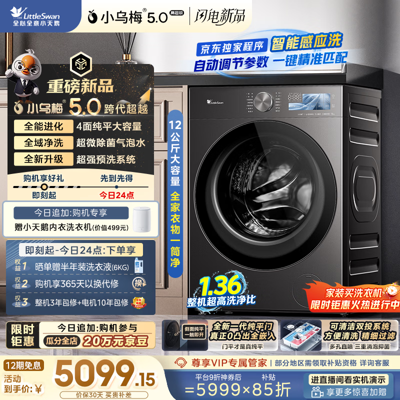 小天鹅(LittleSwan)小乌梅5.0高奢版 AWE同款 滚筒洗衣机全自动 带烘干洗烘一体 12KG超大容量 TD12K60 以旧换新
