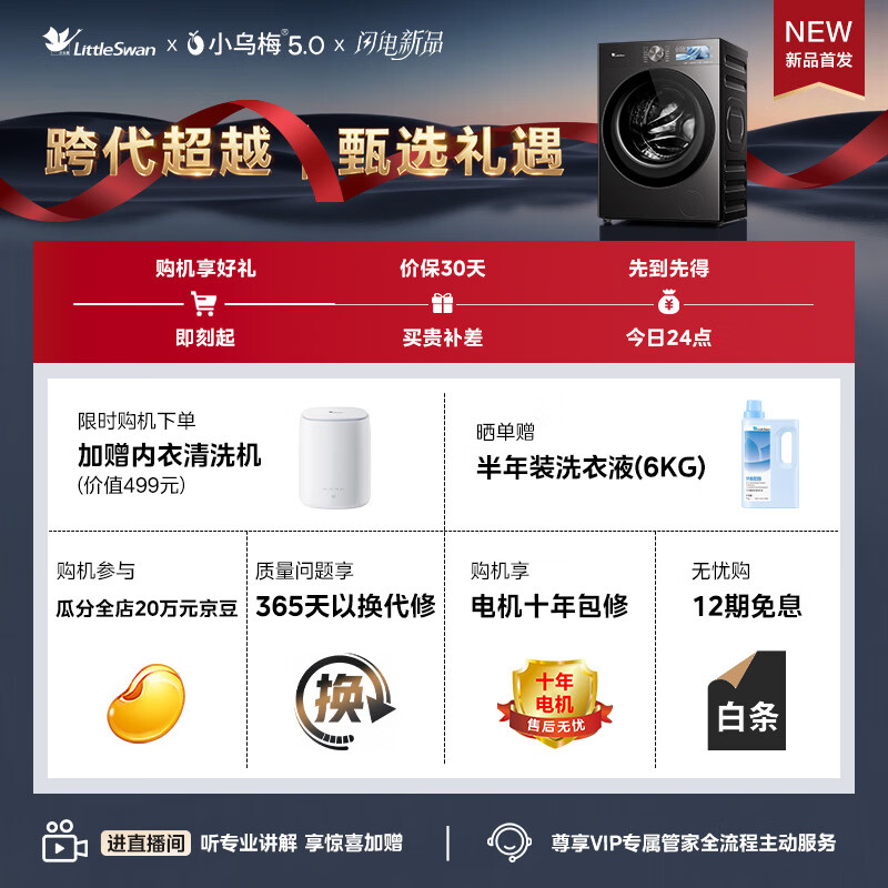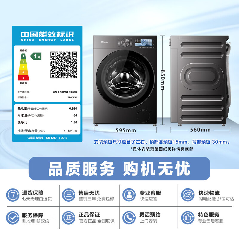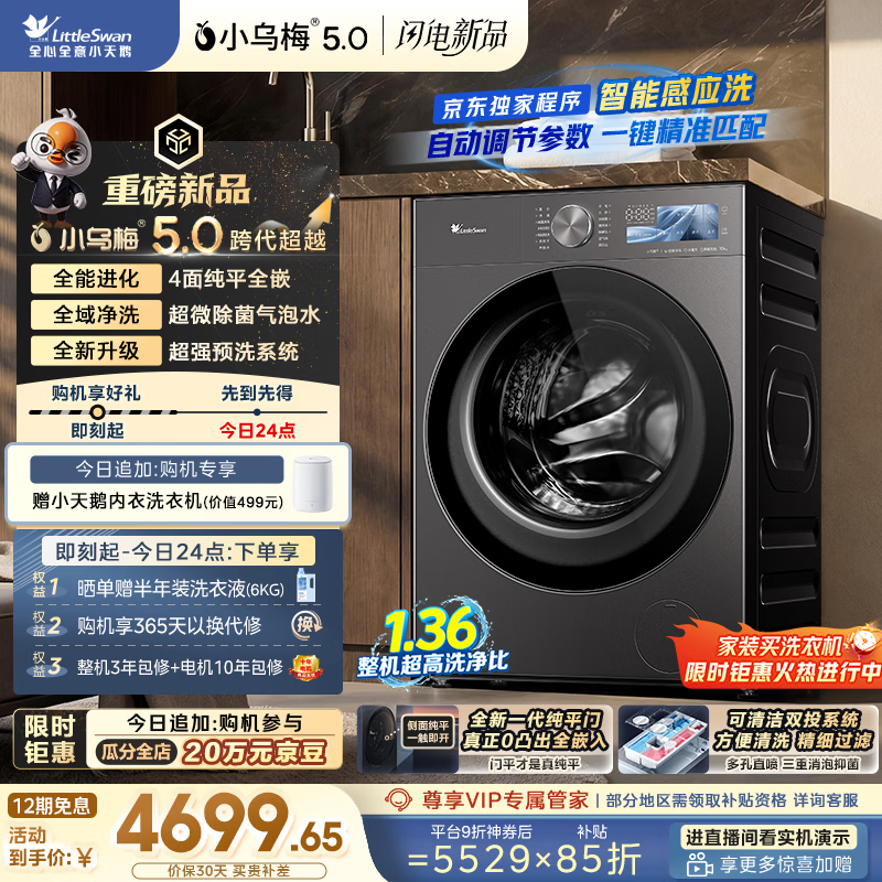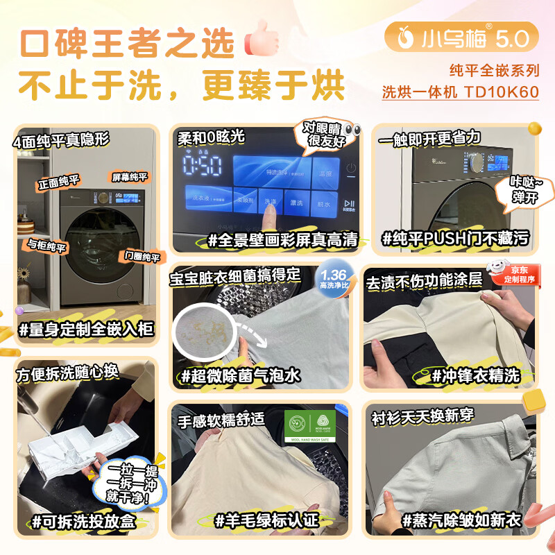 小天鹅(LittleSwan)小乌梅5.0跨代机皇 AWE同款 滚筒洗衣机全自动 带烘干洗烘一体 10KG纯平全嵌 TD10K60 以旧换新