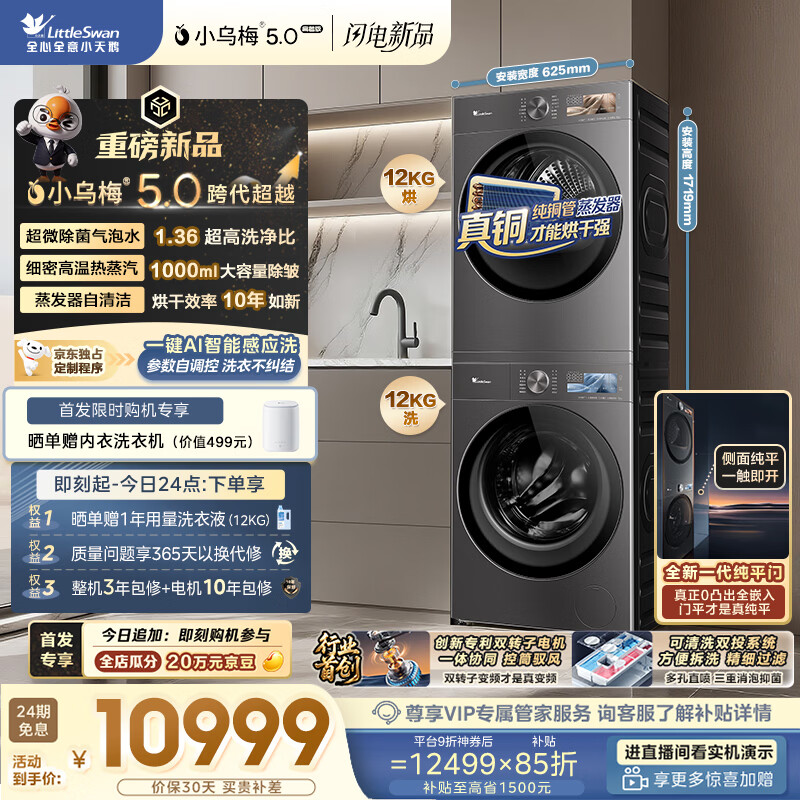 小天鹅(LittleSwan)小乌梅5.0高奢版 洗烘套装 12KG大容量滚筒洗衣机全自动+双转子热泵烘干机TG12EK60+12K60