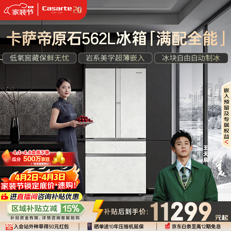 卡萨帝(Casarte)原石562L法式多门冰箱594MM超薄零嵌自动制冰MRAPlus低氧窖藏 BCD-562WGCFDM4DUU1 561 570同款