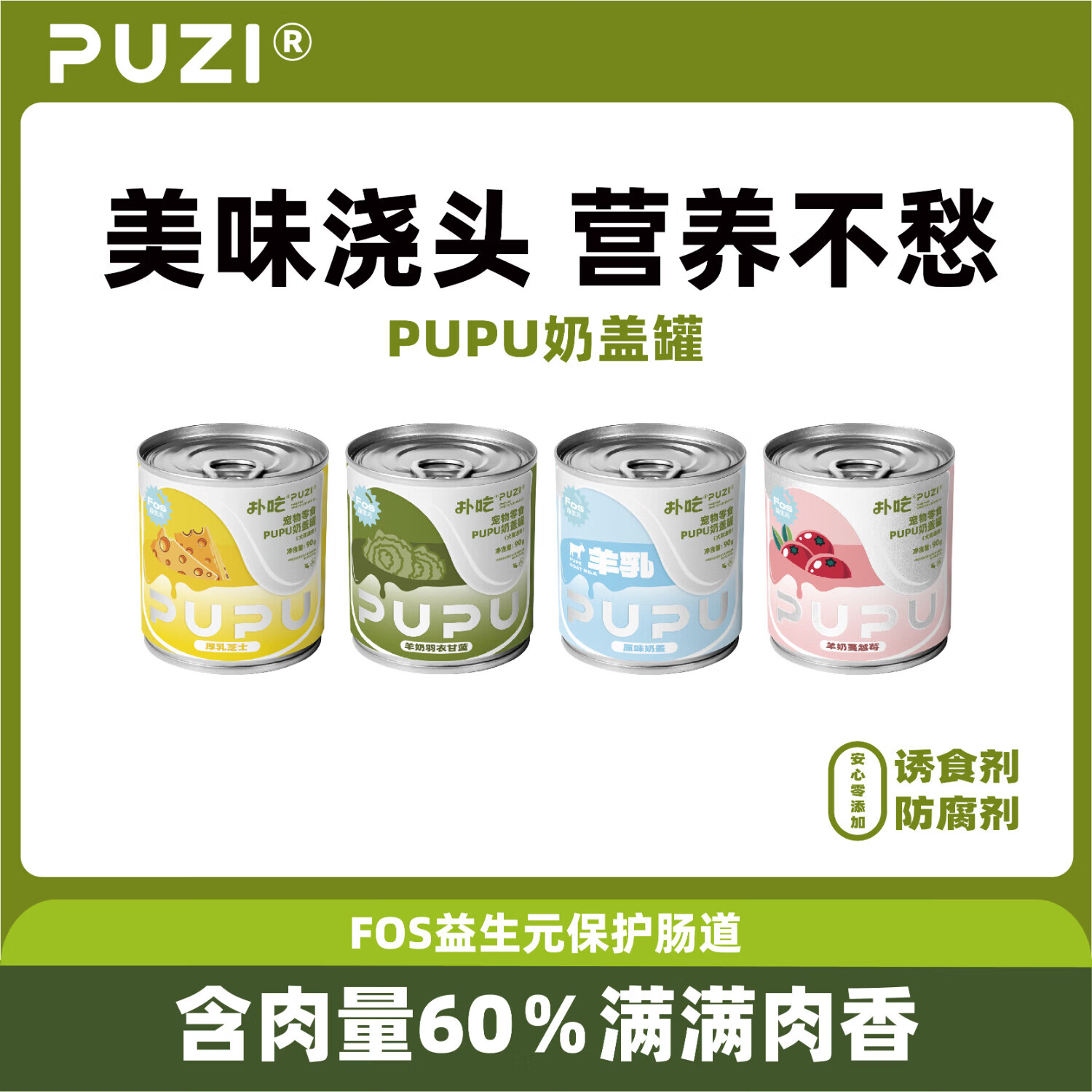 PUZI扑吃奶盖罐猫狗通用猫罐头狗罐头奶昔罐头猫咪狗狗零食90g 随机口味 2罐