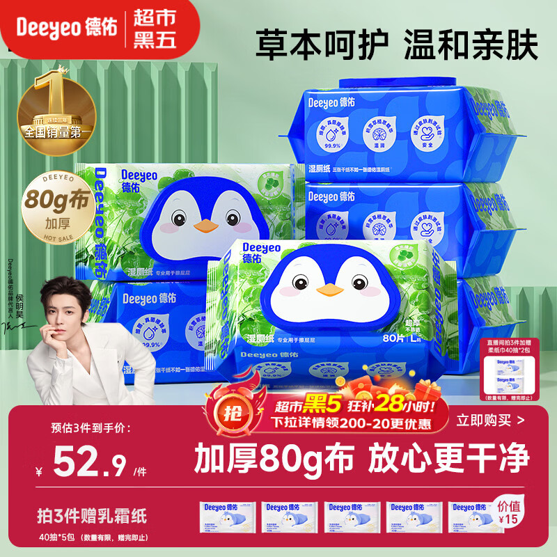 德佑积雪草湿厕纸80抽*6包家庭装 洁厕湿纸巾厕纸卫生纸可冲马桶