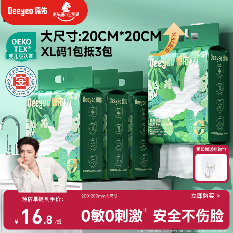 德佑洗脸巾160抽*4提壁挂式加大加厚一次性干湿两用棉柔洁面绵柔巾