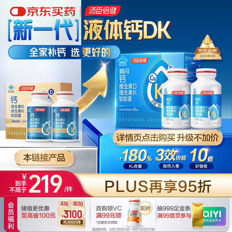 汤臣倍健液体钙dk400粒 维生素d维生素k2成人女士钙片中老年人补钙