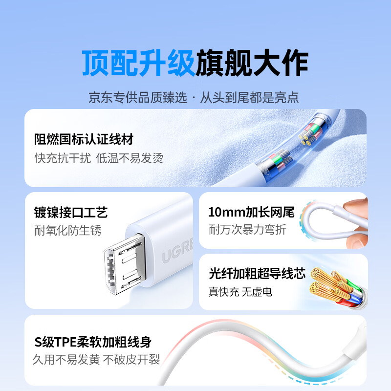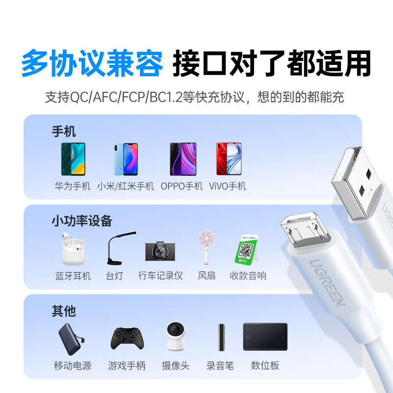 绿联安卓快充数据线MicroUSB充电线老式梯形接口适用vivo/华为/小米/荣耀oppo手机充电宝充电器1米2A